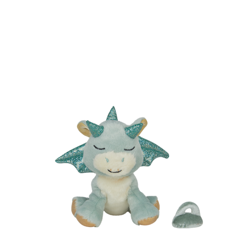 With snuggly green fur, embroidered eyes, and shimmery emerald wings, this little dragon loves curling up in pockets, drifting off to naps, and listening to whispered secrets.