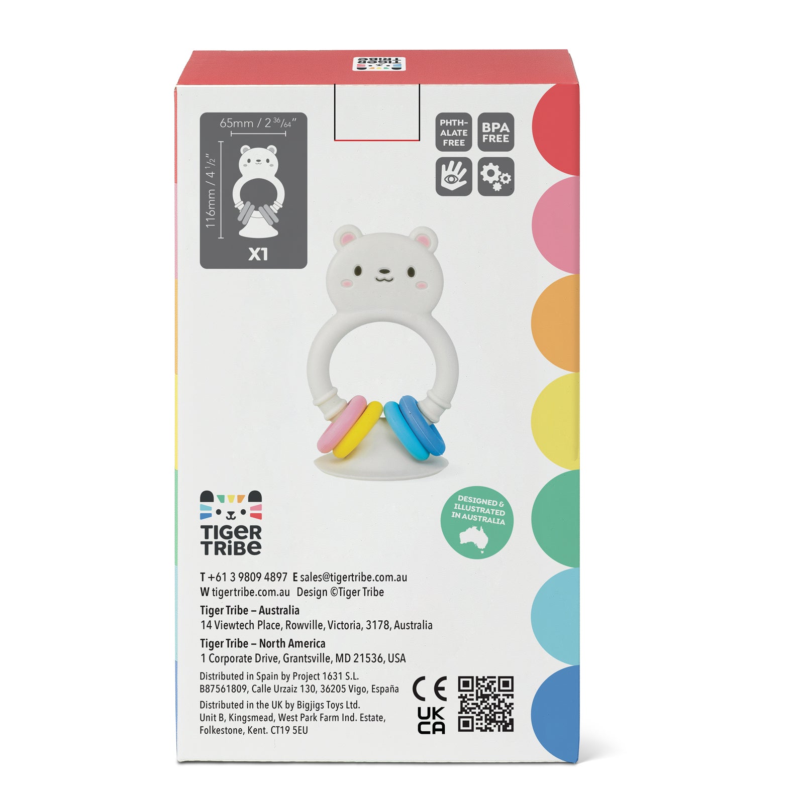 Crafted from soft, food-grade silicone, this adorable buddy is packed with baby-friendly features: easy-grip textures, gentle teething surfaces, and colourful rings for curious little hands to twist, tug and explore. Completely BPA-free and non-toxic, it’s perfect for soothing sore gums while supporting important early development.