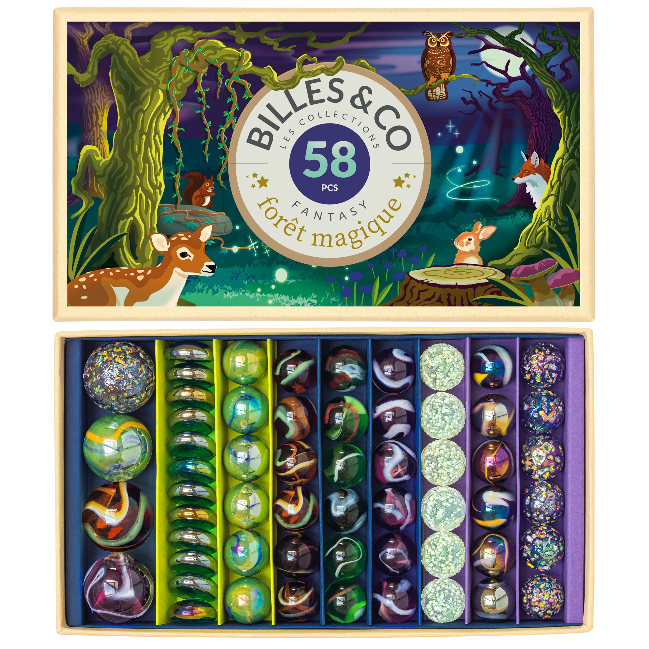 The marbles are sourced from all over the world in myriad colours and arranged thematically into boxes corresponding to different themes. Each Billes & Co. box of marbles is a work of art in itself, hand-painted by Manu in their French workshop. The marble boxes are made with all-natural and recycled materials, presenting an eco-friendly toy that will inspire children’s imagination and develop their motor skills.