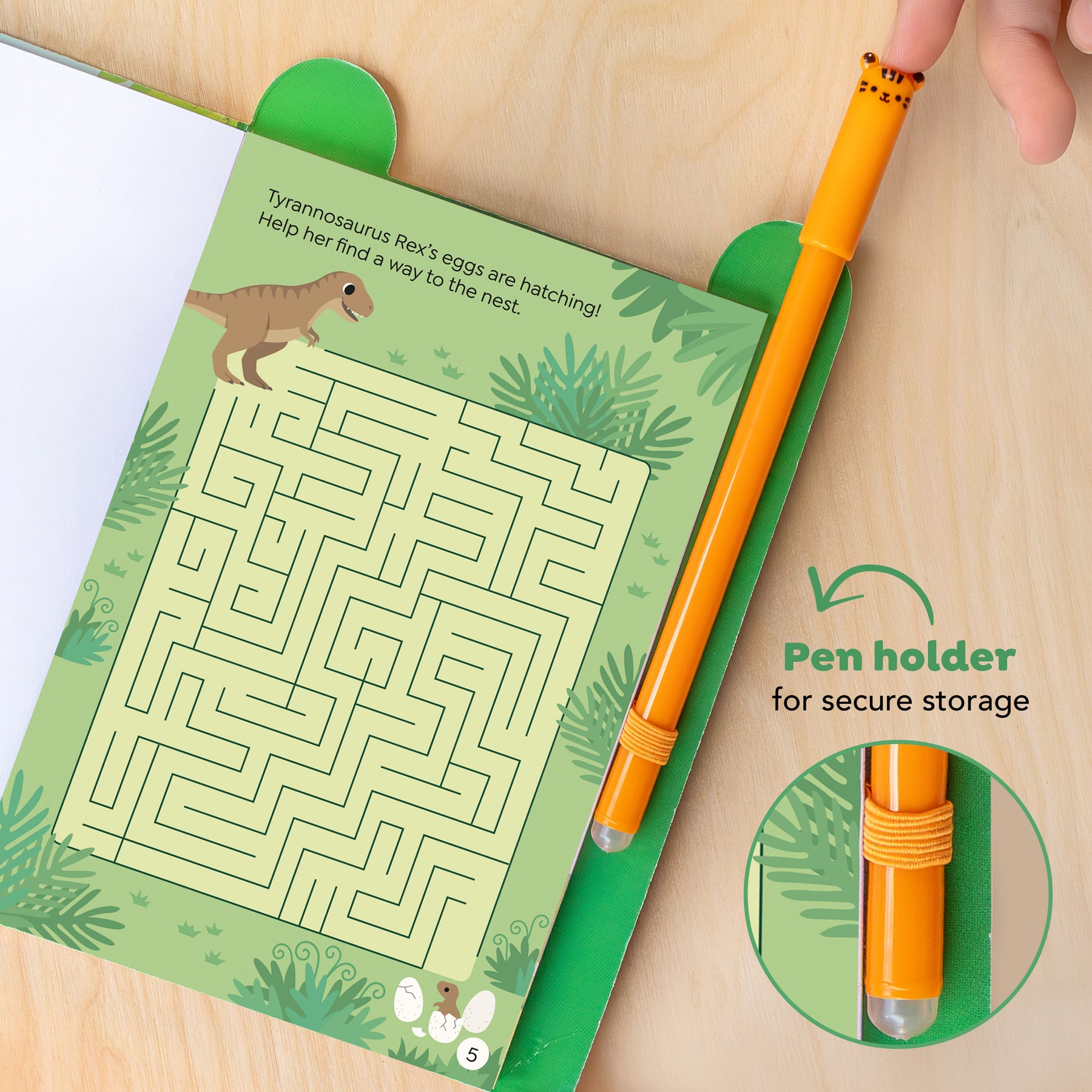 Inside, kids will discover 25 pages filled with mazes, code-breakers, word searches, spotting games and more – all brought to life with friendly dinosaurs and playful illustrations. The clever erasable pen means every activity can be completed, wiped clean, and enjoyed all over again, adding endless replay value to this pocket-sized powerhouse.