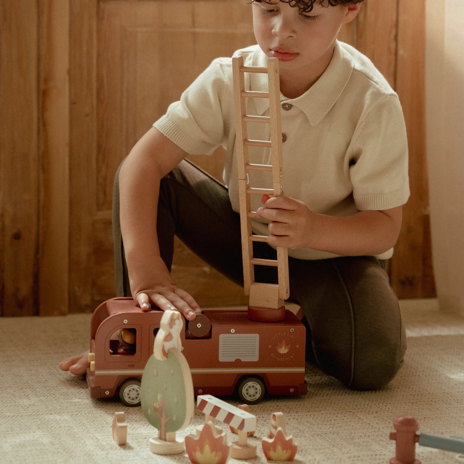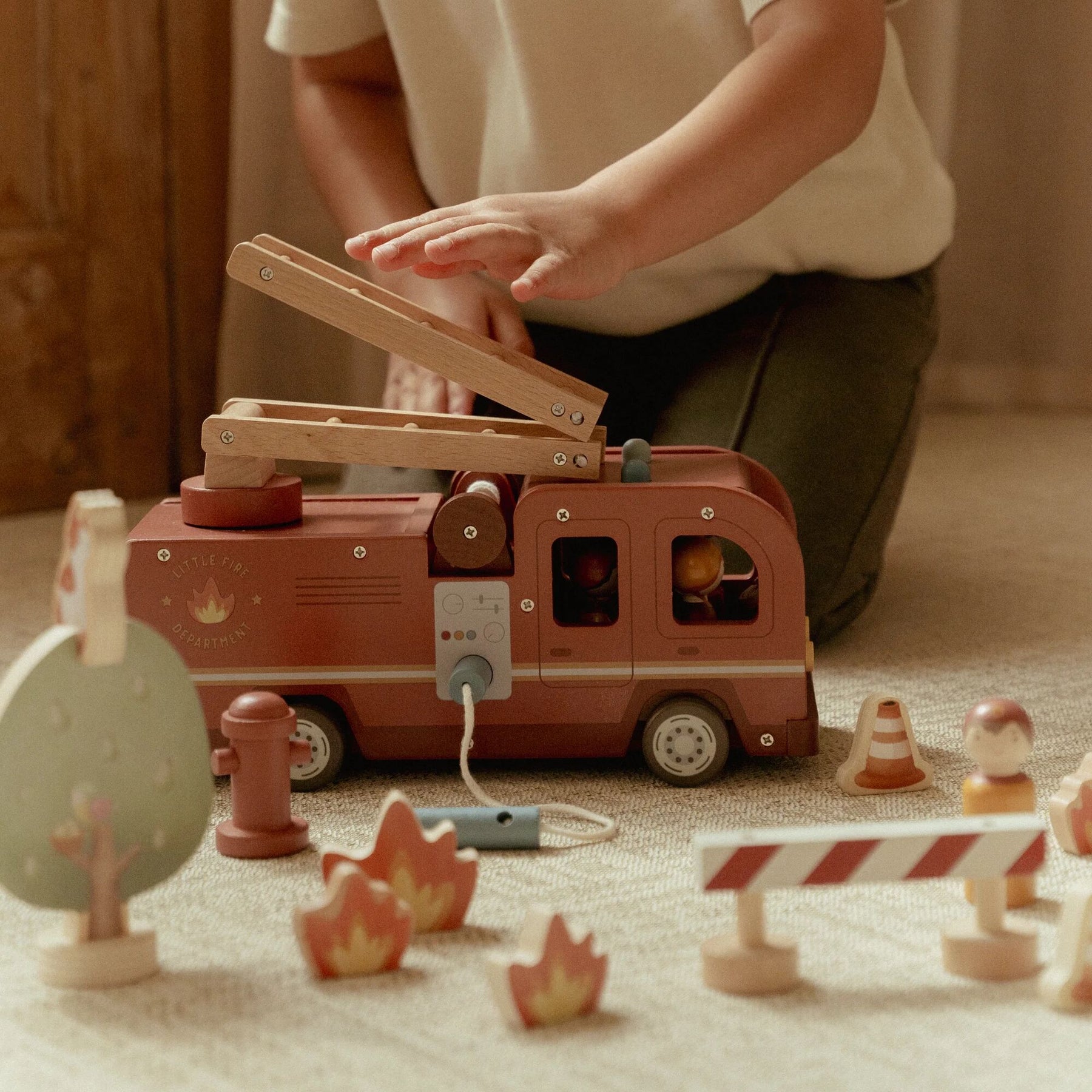 Wooden Fire Truck Playset by Little Dutch. Brave heroes to the rescue!