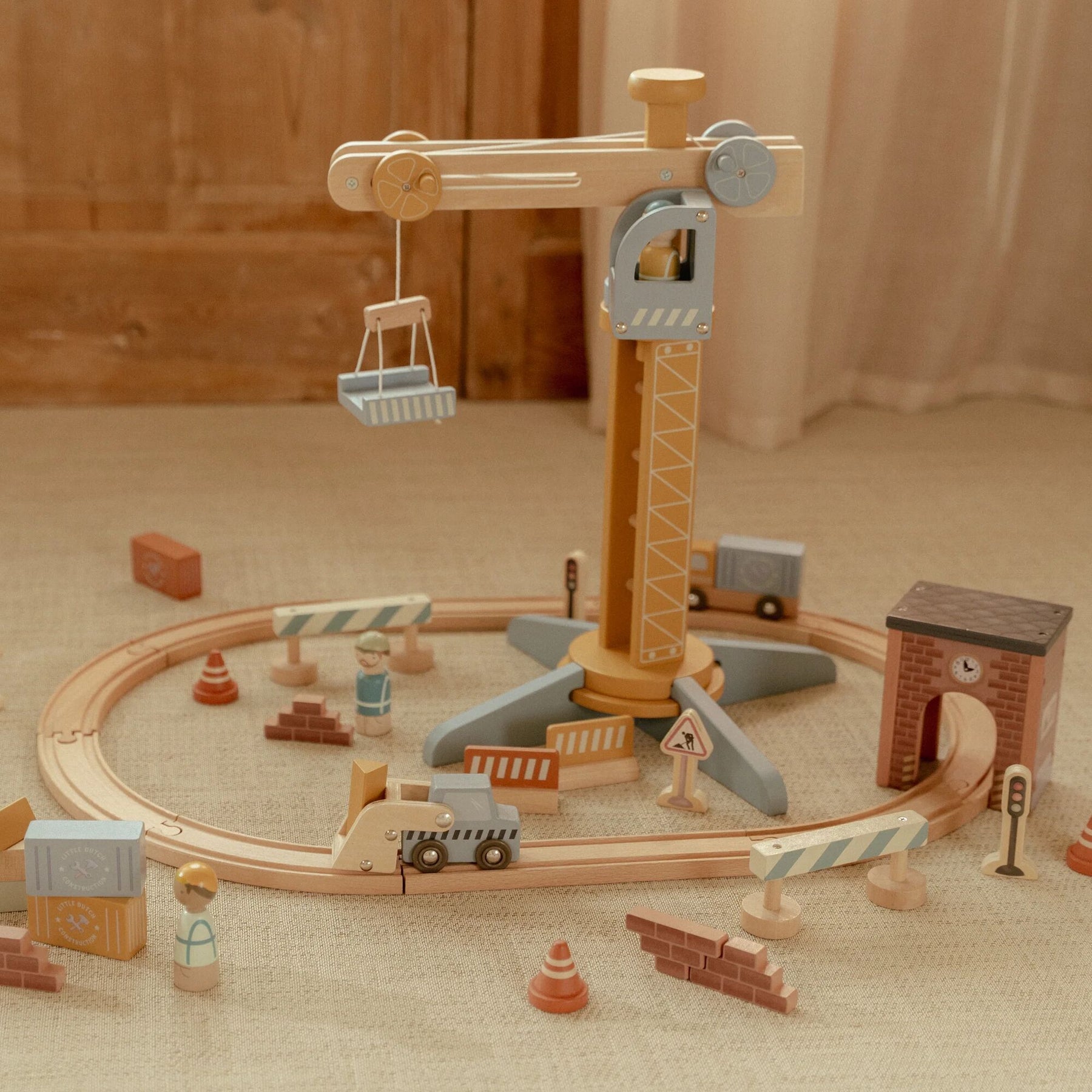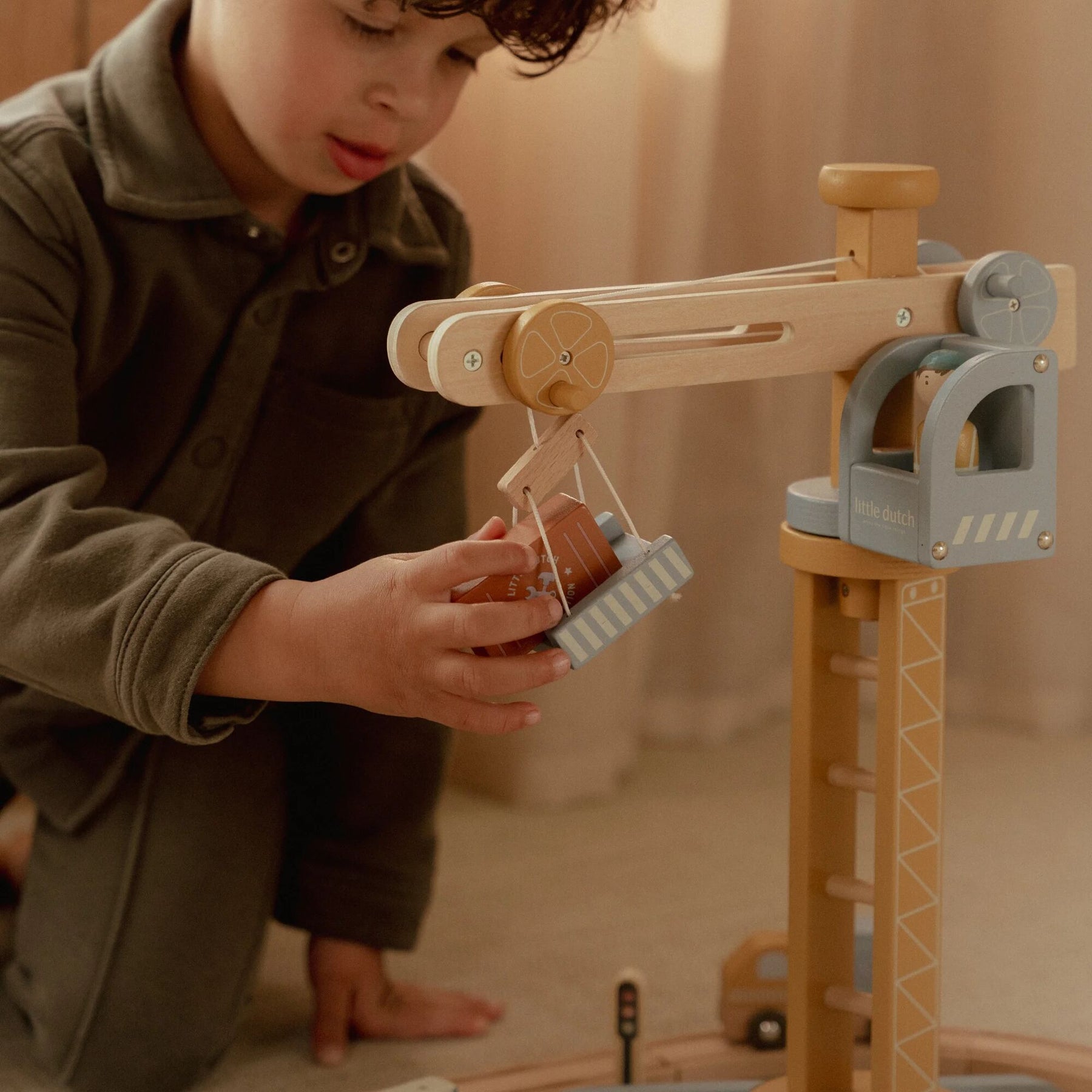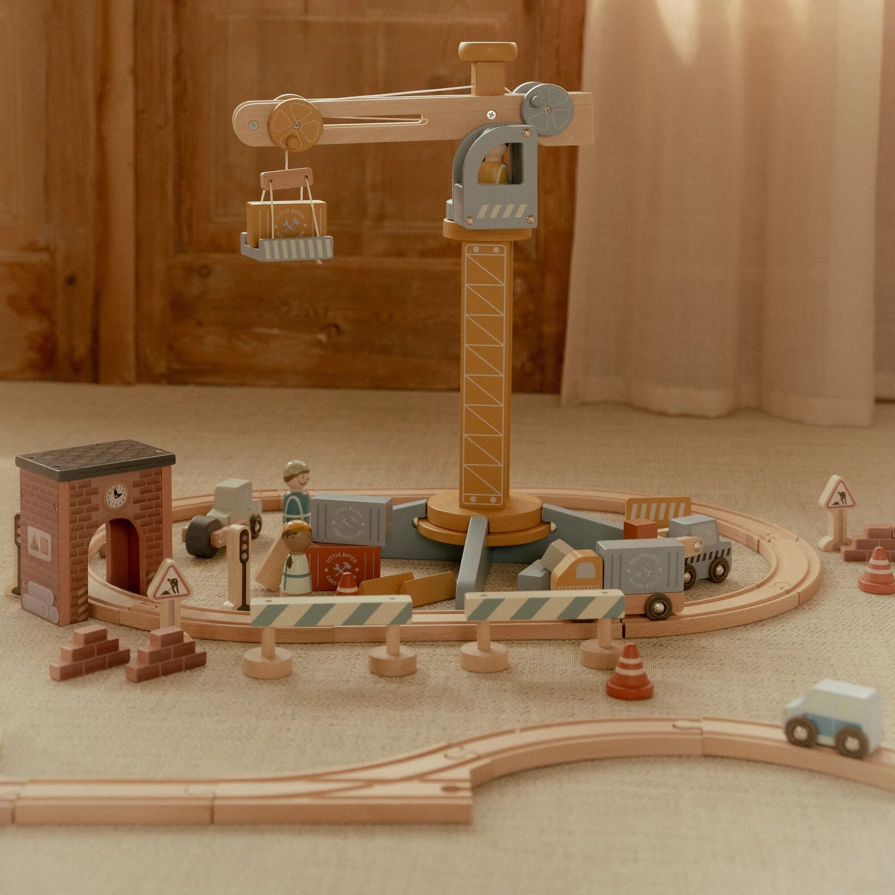 Wooden Train Track Crane Playset by Little Dutch. Lift, build and explore!
