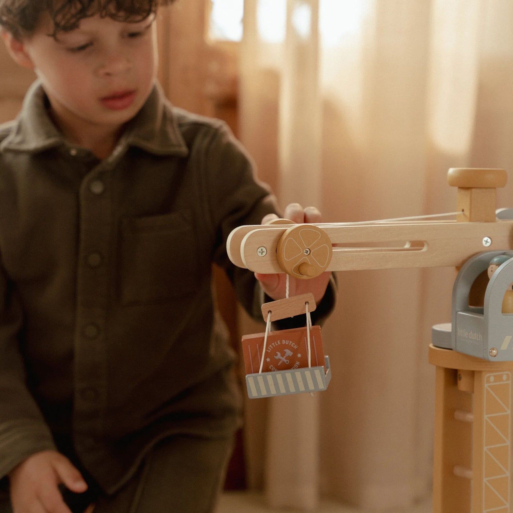 Calling all mini builders! The Little Dutch Wooden Train Track Crane Set is where big imaginations meet busy construction fun. Perfect for little site managers with big ideas, this charming set turns any playroom into a bustling world of cranes, cargo, and creative engineering.