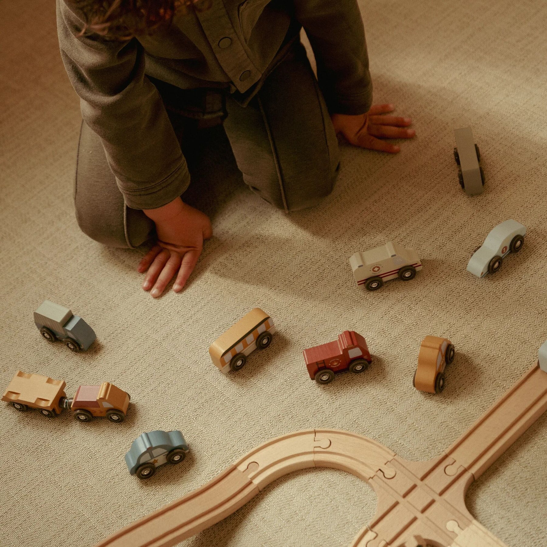 With taxis, race cars, service vehicles, and more, children can create endless stories as they drive, race, rescue, and explore their make-believe town. Each vehicle is beautifully crafted in soft Little Dutch colours, making them as lovely to display as they are to play with.