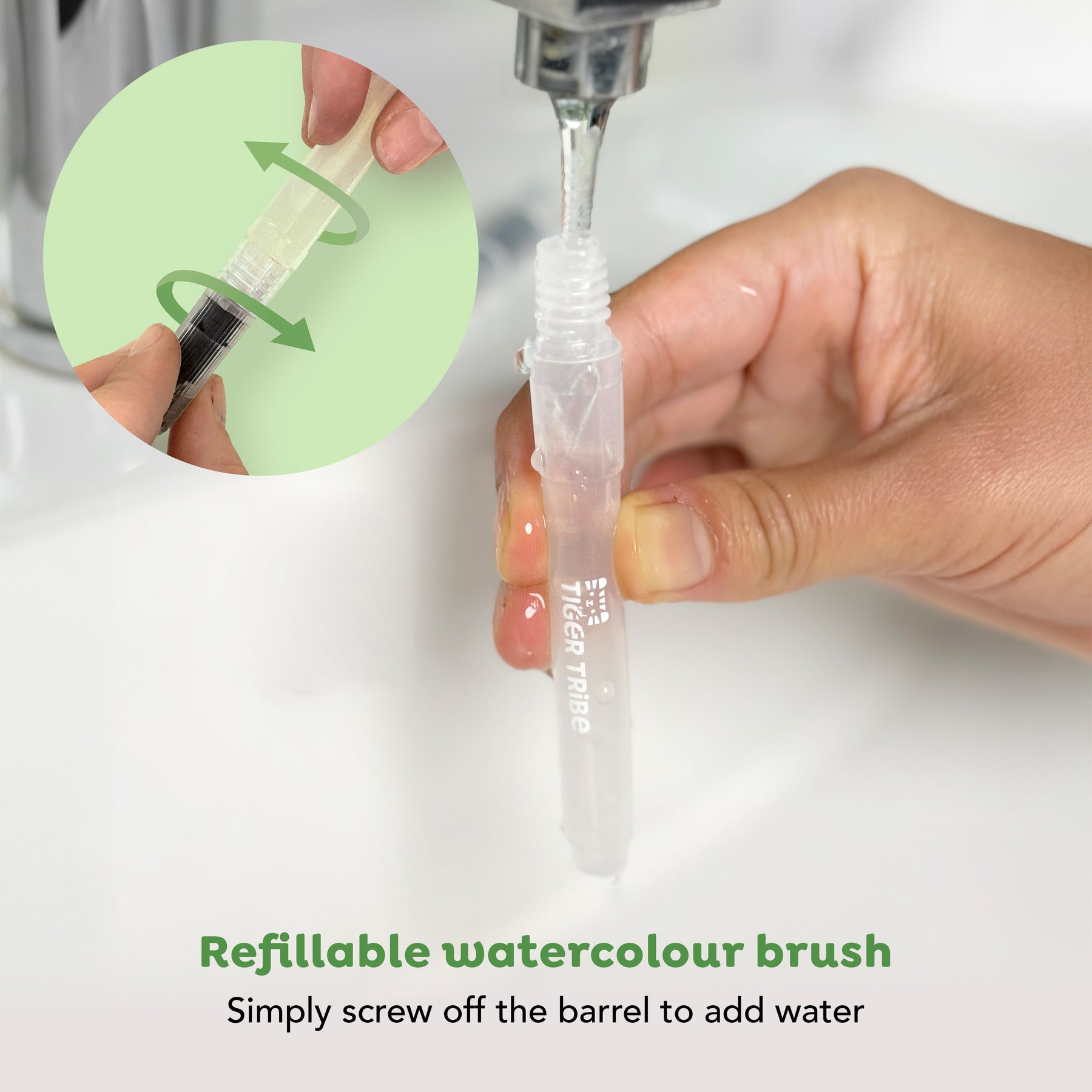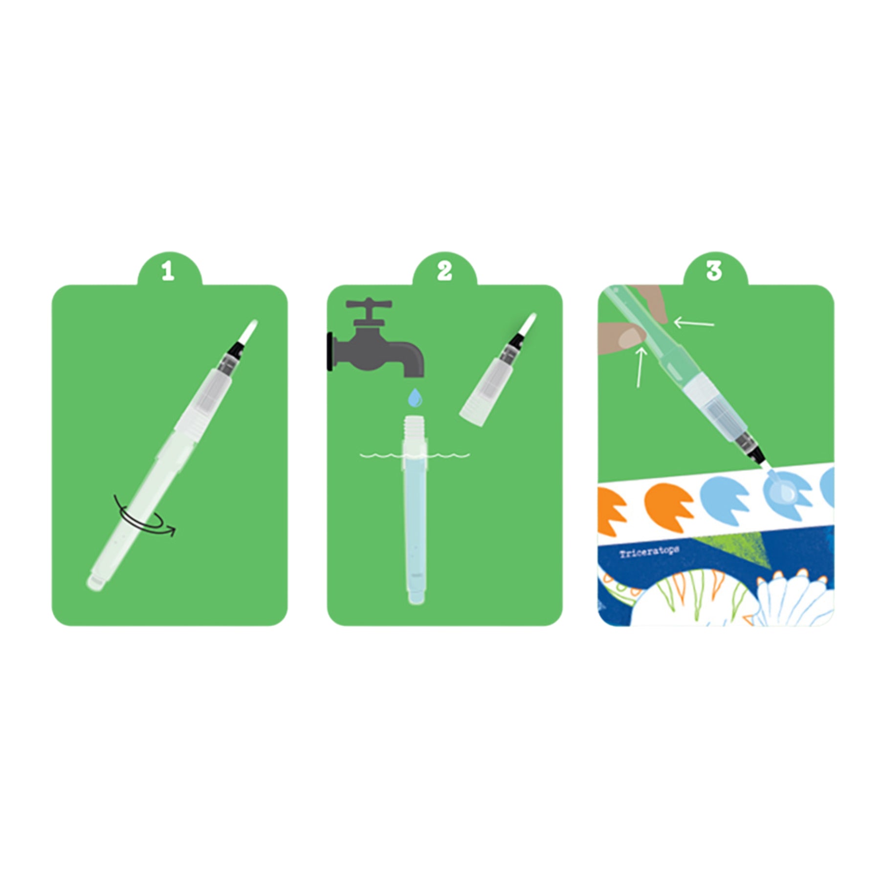 Perfect for first-time painters, this clever watercolour set includes 16 high-quality, perforated pages, making it easy to remove, display and admire every masterpiece. Kids simply fill the magic waterbrush, dab it into the colour spots on the page, and watch the artwork transform into a bright, colourful scene. The included sponge tool adds extra painting fun and helps manage water for little hands.