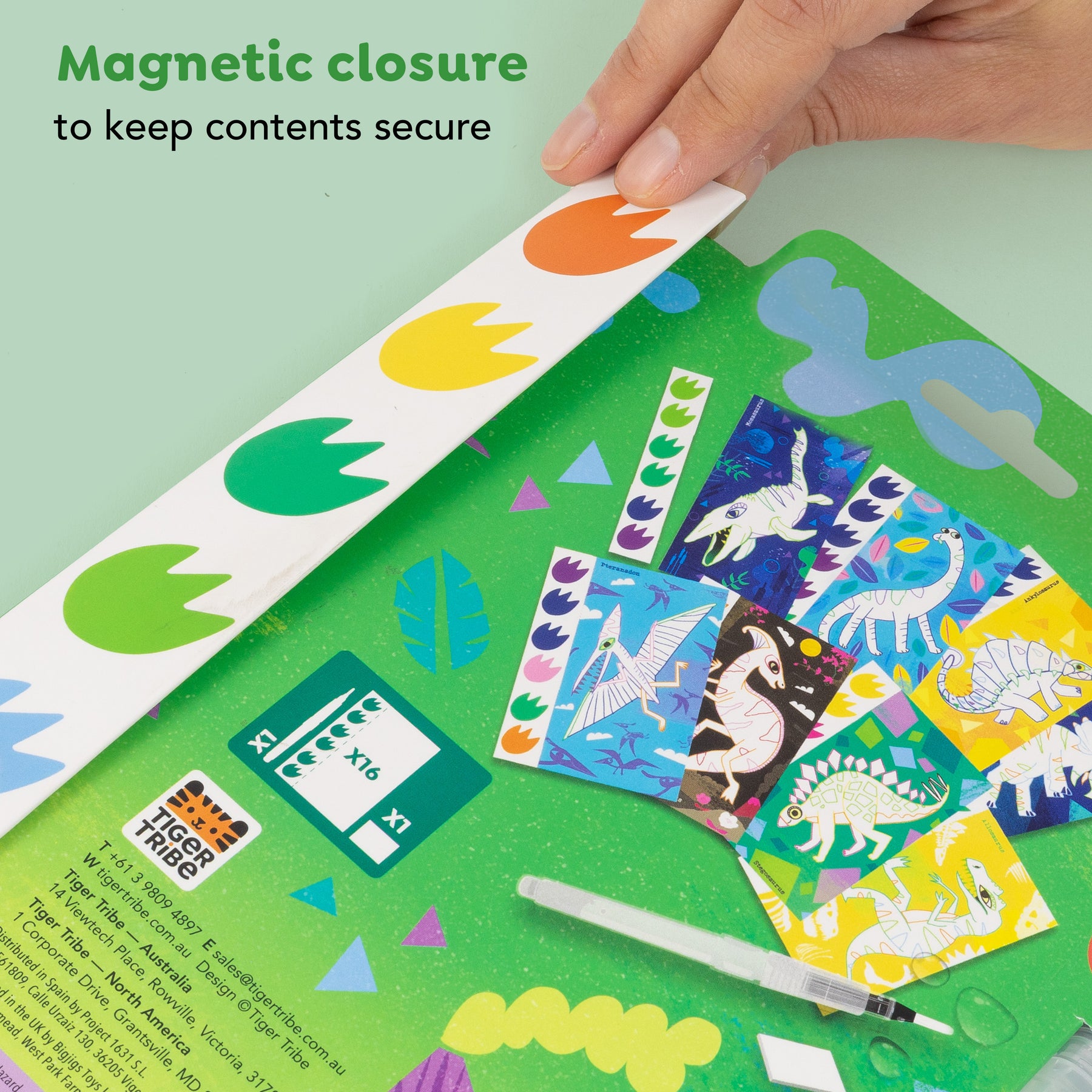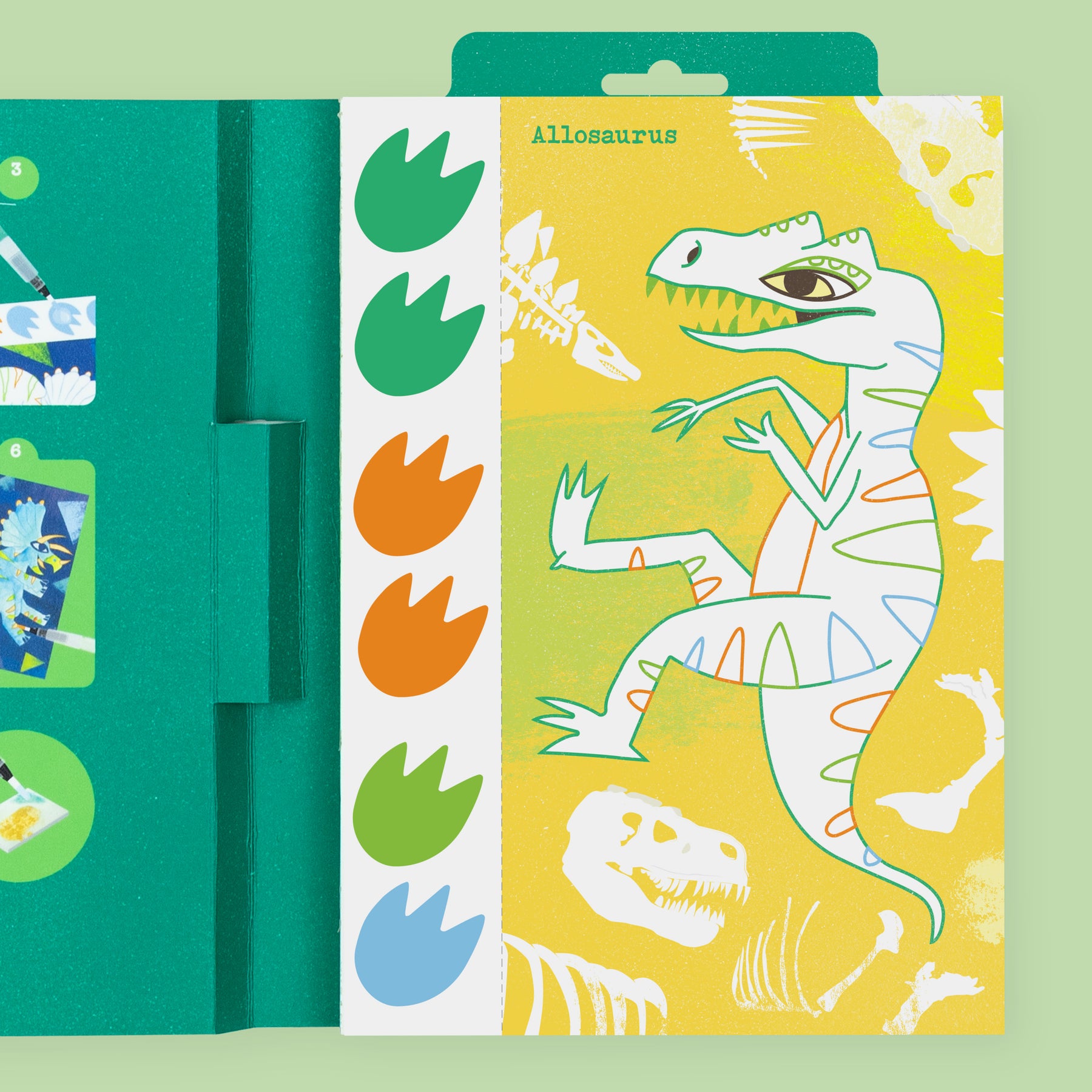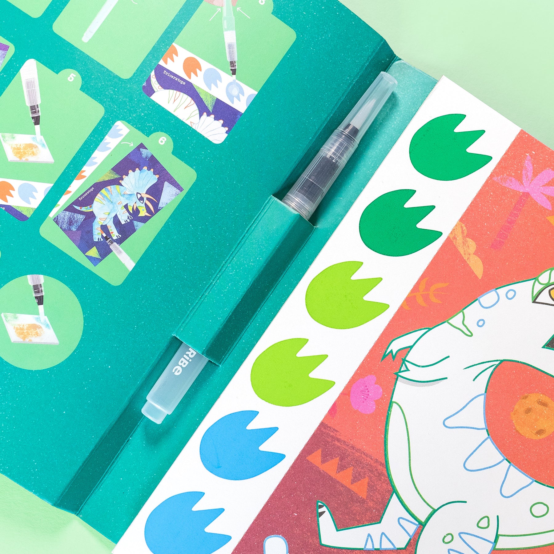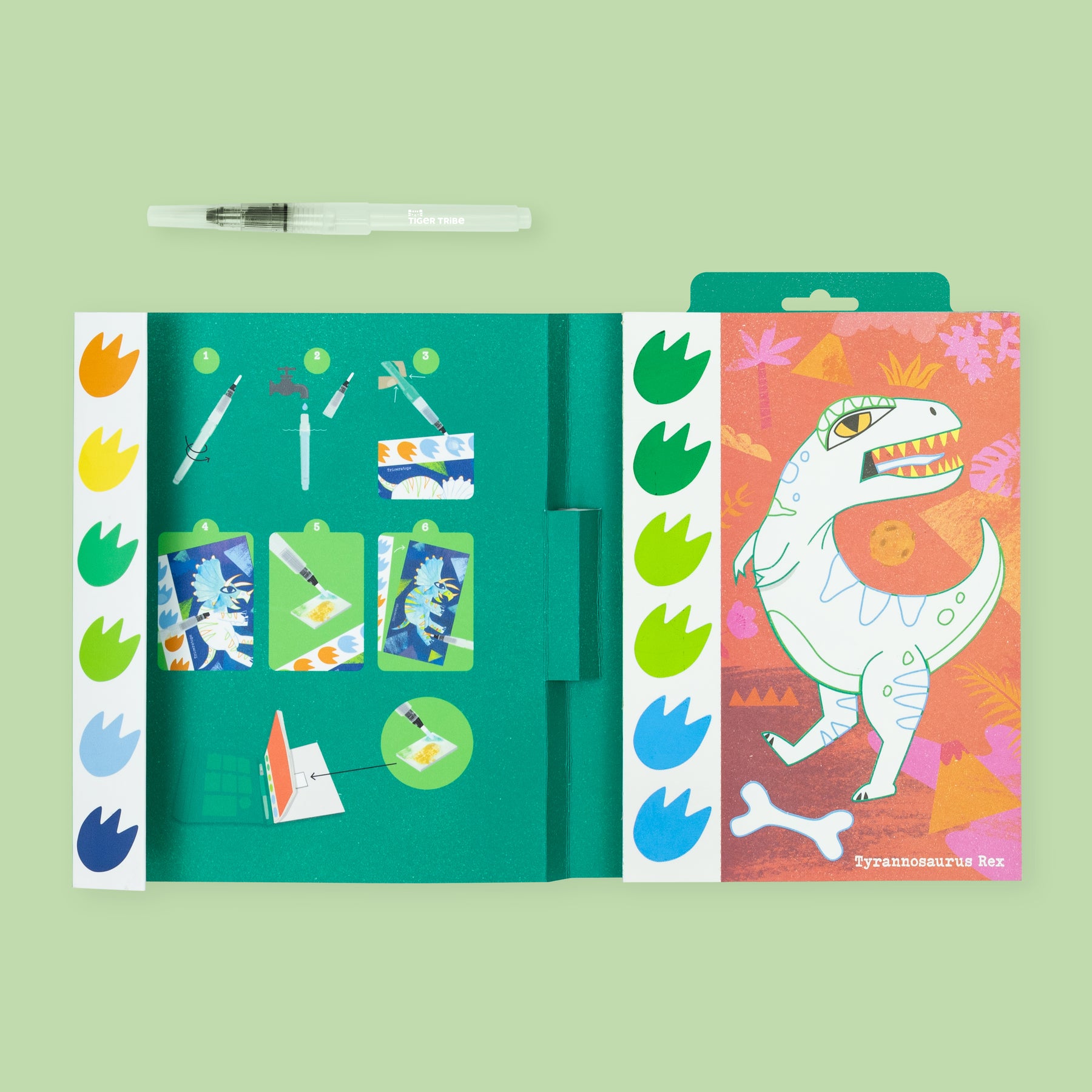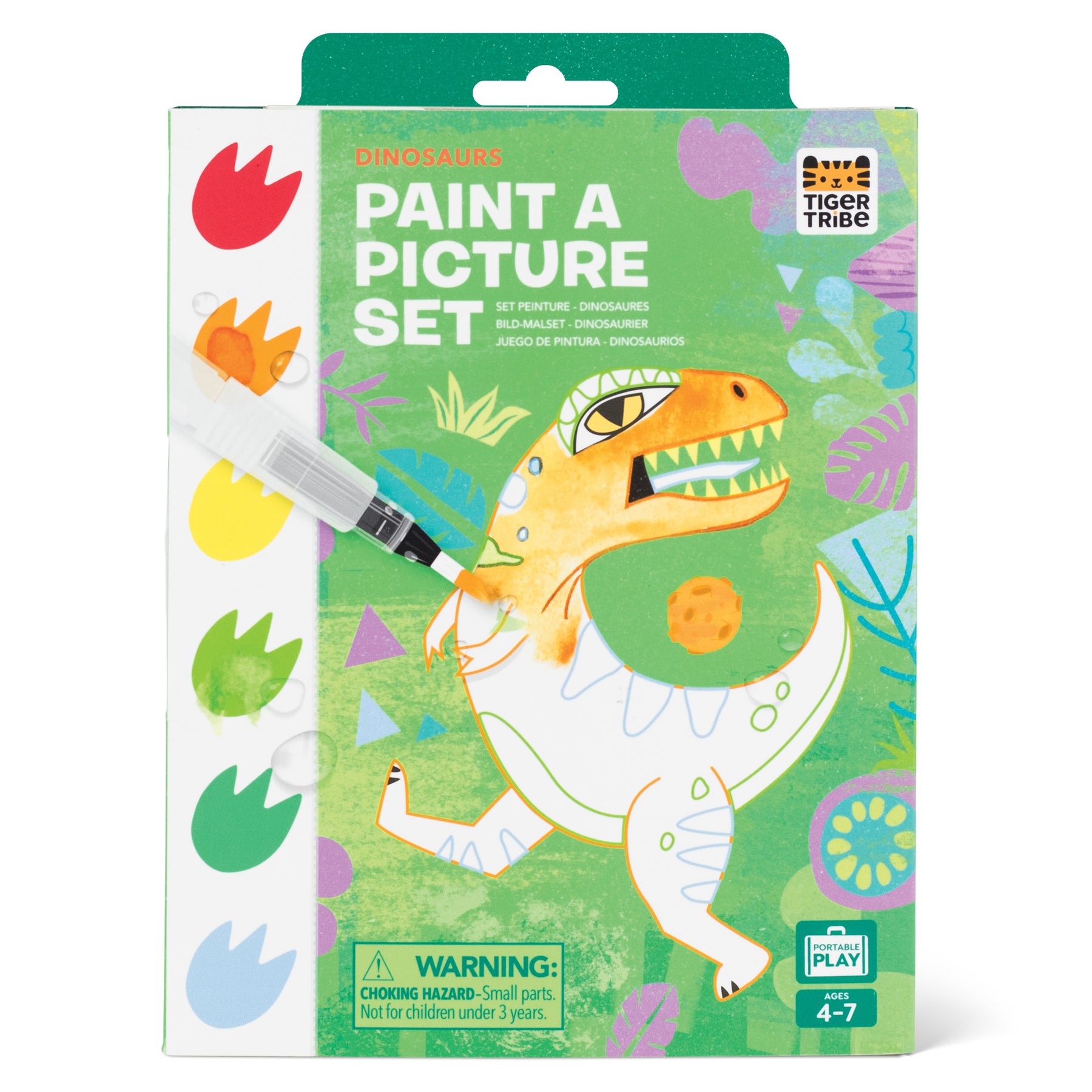 Paint A Picture – Dinosaurs by Tiger Tribe. Let little artists roar with creativity as they paint their way through the prehistoric world with the Tiger Tribe Paint A Picture – Dinosaurs set! Each page is packed with playful, beautifully illustrated dinos – from friendly stegos to stomping T-rexes – and features 6 vibrant built-in paint pigments ready to bring each creature to life with just a swoosh of water.