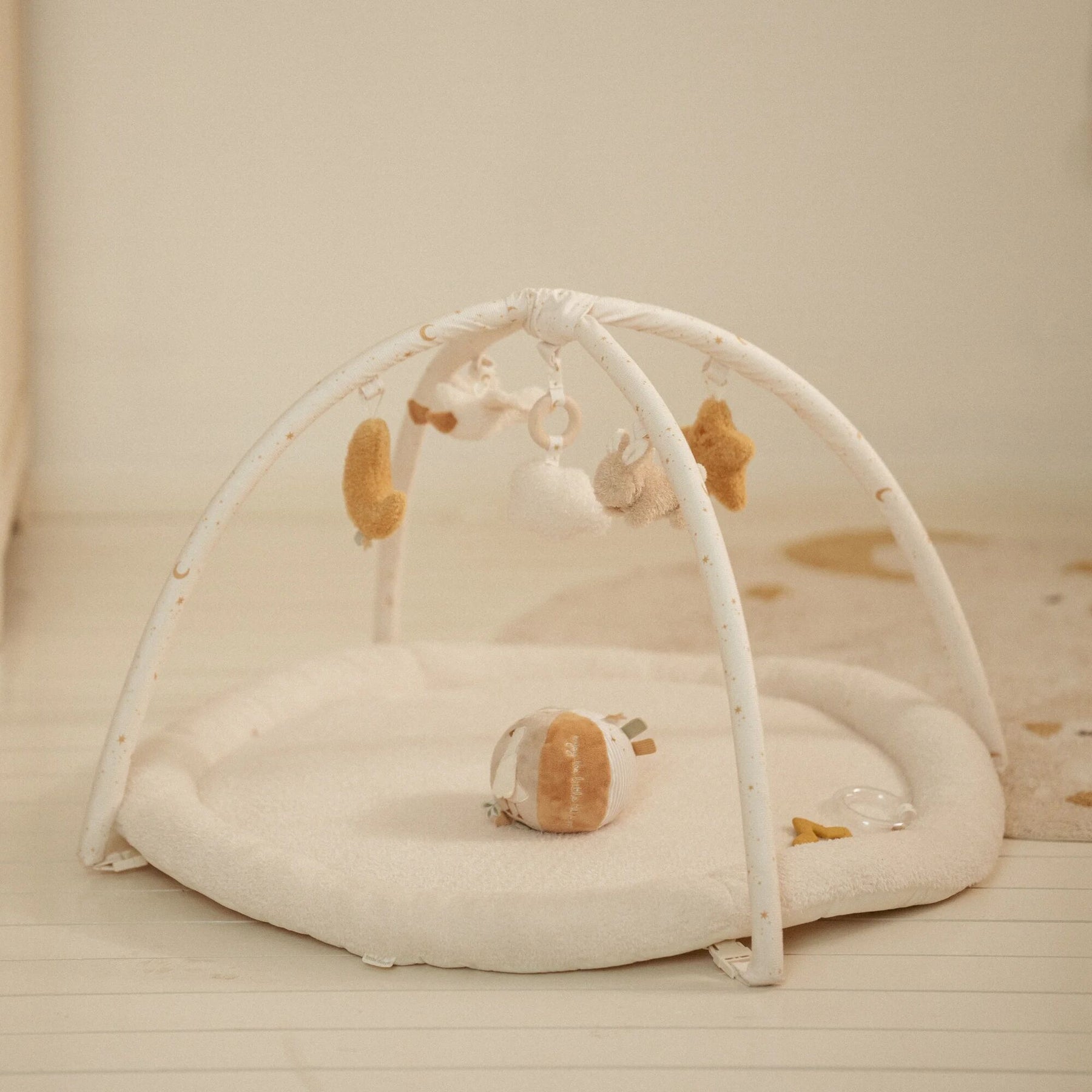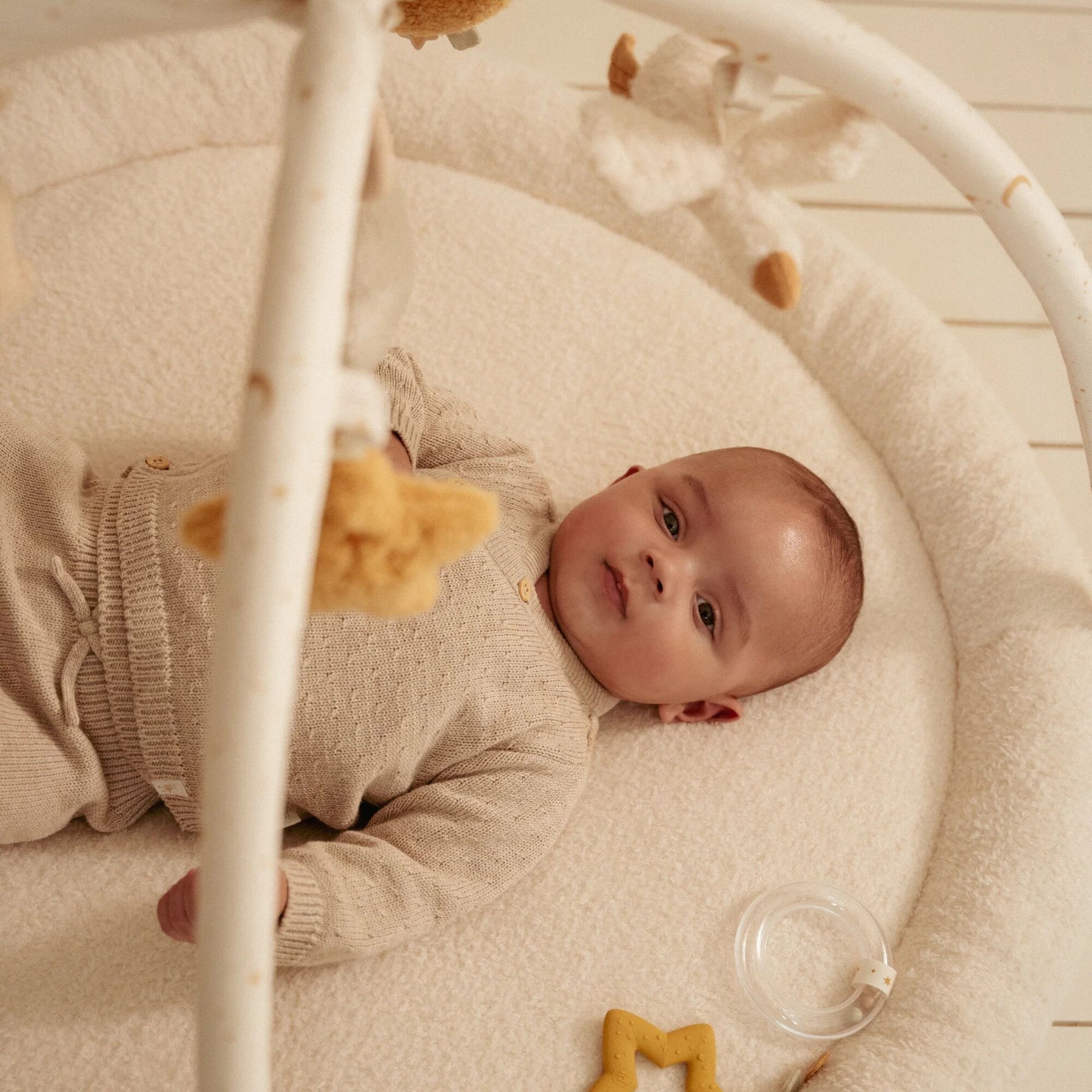 Perfect for tummy time, stretching, reaching, and those very first playful discoveries, this activity playmat encourages sensory development, builds strength, and inspires little ones to move and explore at their own pace. A soothing, stylish, and enchanting place to play, feel, dream, and grow – made for the littlest dreamers with the biggest imaginations.