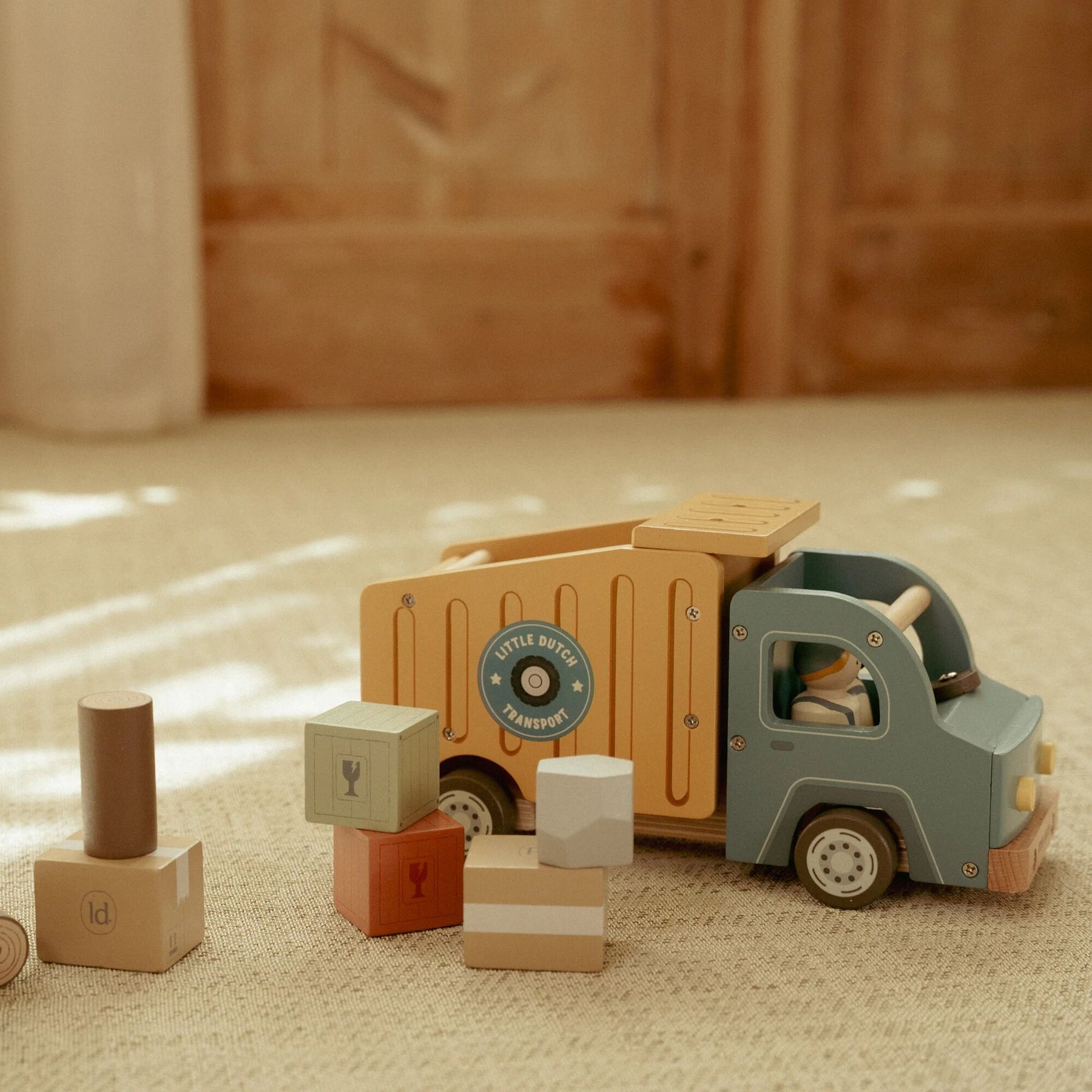 Wooden Dump Truck Playset by Little Dutch. Load, lift and deliver!