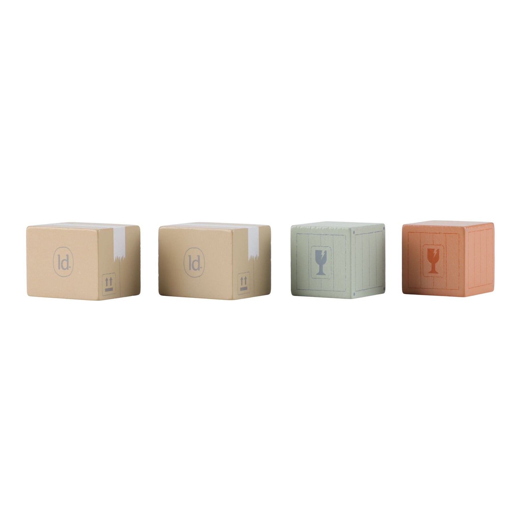 Beautifully crafted in the signature Little Dutch colour palette, the sturdy wooden truck features chunky wheels for smooth driving and plenty of space on the back to load and unload goods. The set includes friendly wooden drivers and a selection of cargo pieces – from boxes to logs and stacked shapes — inviting little ones to sort, stack, deliver, and imagine their very own transport stories.