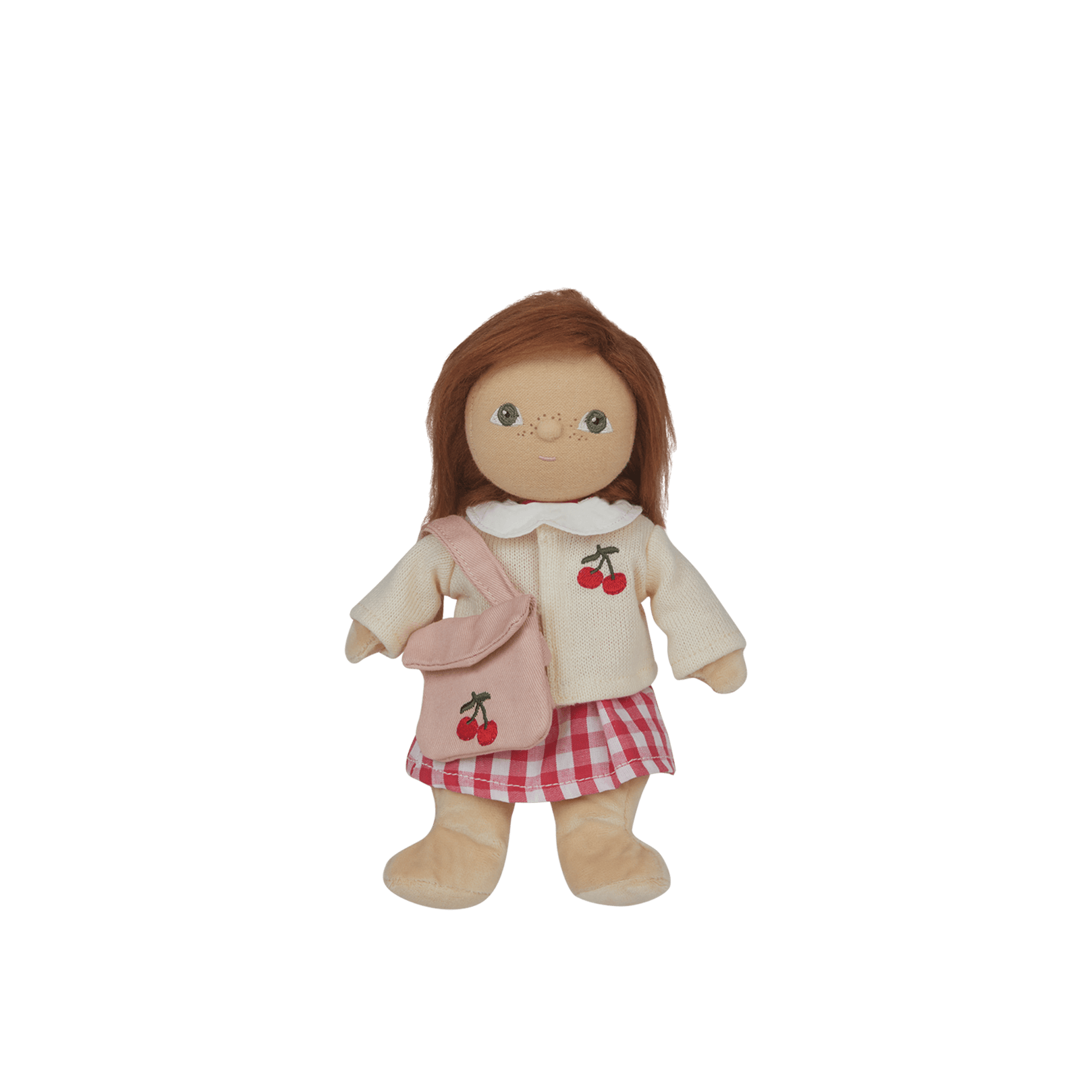 Dress Me Dinky Dinkum – Hazel Hawthorne by Olli Ella. Hazel Hawthorne’s cherry bag jingles as she runs – filled with berry-stained napkins, sparkly things and one very tiny frog (who’s just visiting, of course). She knows all the secret hideouts and loves sharing them with anyone who promises to keep them secret.